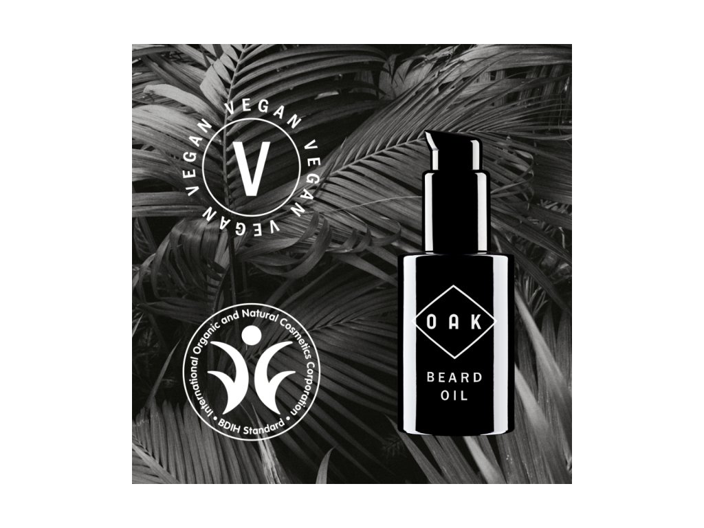 Složení se skládá z bio rostlinných olejů speciálně vybraných pro péči o vousy a obličej, vyhlazuje vousy a chrání pokožku před vysoušením. Mandlový olej vousy hydratuje, jojobový olej je vyživuje vitamíny A a E a olej z brokolicových semínek jim dodává přirozenou hebkost. Beard Oil při aplikaci obalí vousy a po zastřižení zacelí ostré konečky. Podporuje také rozčesatelnost a zajišťuje pružnou pokožku obličeje. Olej je ideální pro přechod z krátkých vousů na delší - zajišťuje hladkost, takže vousy méně škrábou. Zároveň hýčká smysly, díky charakteristické vůni OAK, kterou tvoří vetiver, jalovec a grapefruit.